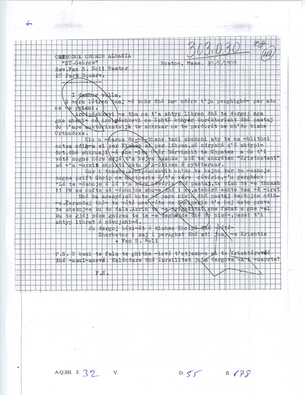 Letër Drejtuar Lef Nosit nga Filip Papajani, 1930Dr. Shefqet Deliallisi